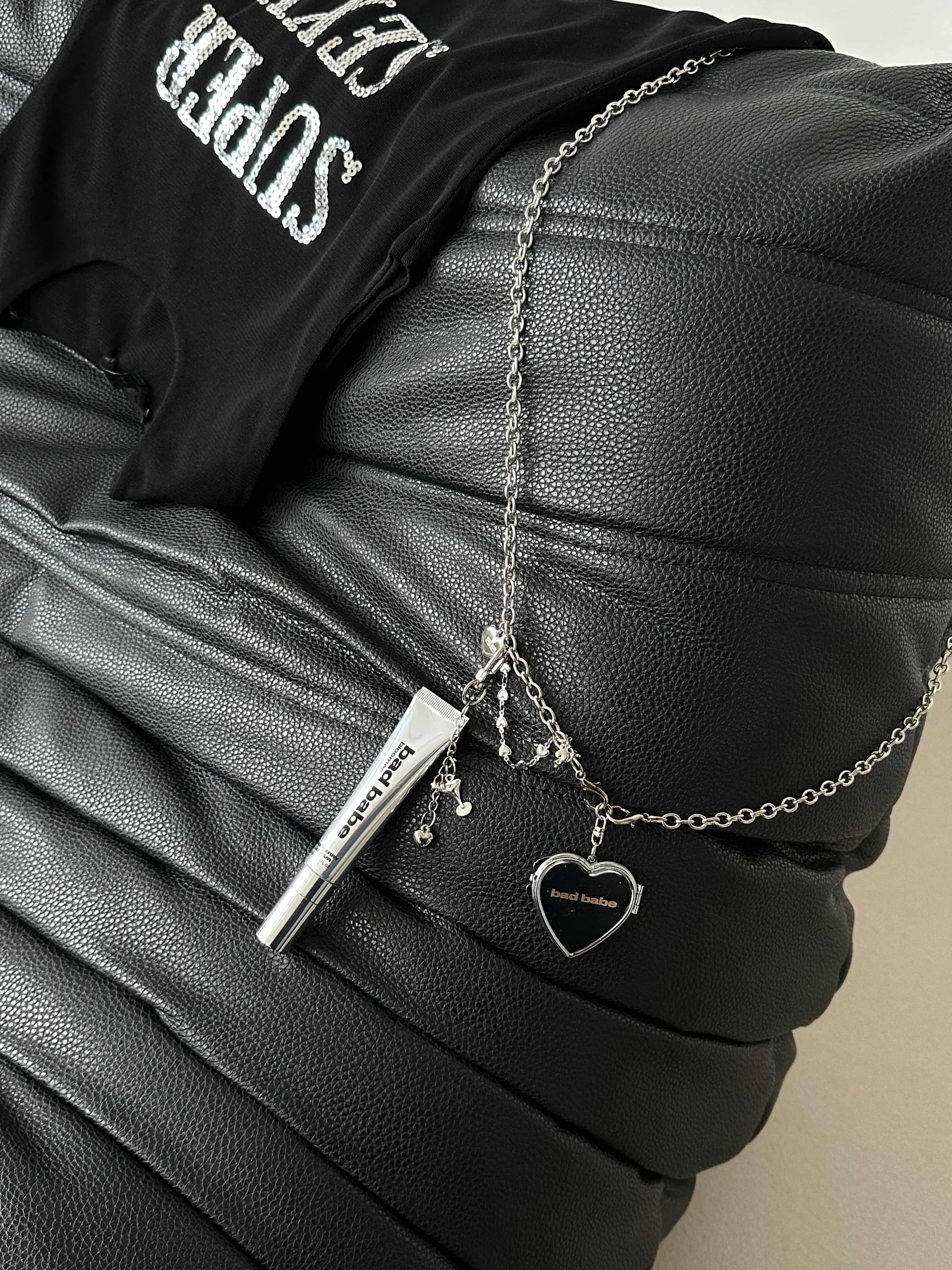 Підвіс легко кріпиться до ланцюжка, сумки або ключів і може поєднуватися з блиском Bloomer, створюючи впізнаваний аксесуар bad babe. Сріблясте покриття, декоративні ланцюжки та підвіски додають образу характеру і підкреслюють стиль бренду.